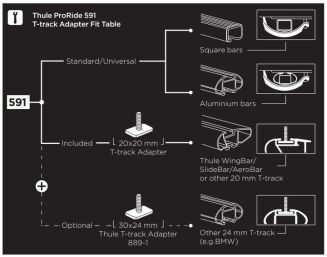 Bagażnik można zamontować zarówno na belkach stalowych, jak i aluminiowych wyposażonych w standardową szynę T.