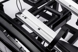 Platforma rowerowa Active Bike E-Bike jest przeznaczona na 2 rowery – w tym również rowery elektryczne (E-bike), które są cięższe i większe niż tradycyjne. Dzięki zwiększonej ładowności (do 60 kg), regulowanemu rozstawowi podstaw kół i szerokim rynienkom na opony do 100 mm (4”), platforma idealnie sprawdzi się do transportu nawet dużych rowerów elektrycznych.